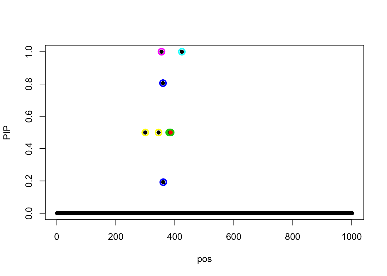 susie_plot(fit_z_init, y = 'PIP', b = beta)