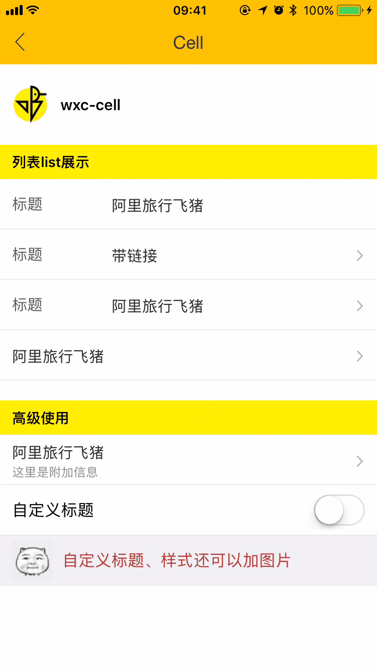 ## [Demo预览](https://h5.m.taobao.com/trip/wxc-cell/index.html?_wx_tpl=https%3A%2F%2Fh5.m.taobao.com%2Ftrip%2Fwxc-cell%2Fdemo%2Findex.native-min.js)