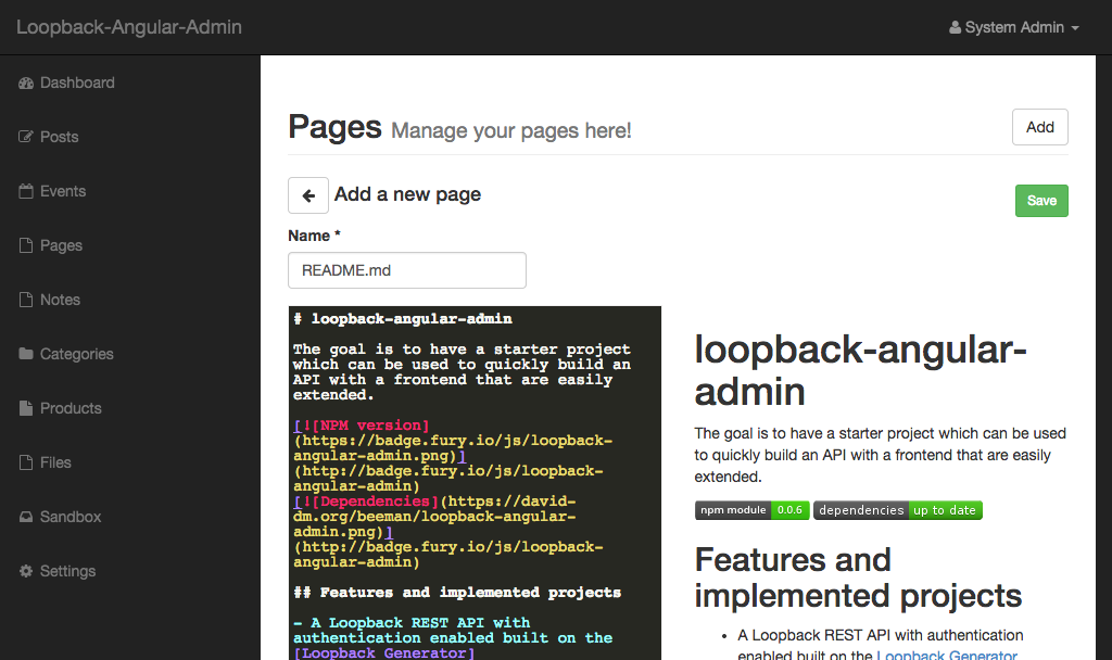 Looking for a nice landing page for your package? https://www.jsdelivr.com/package/npm/loopback-angular-admin