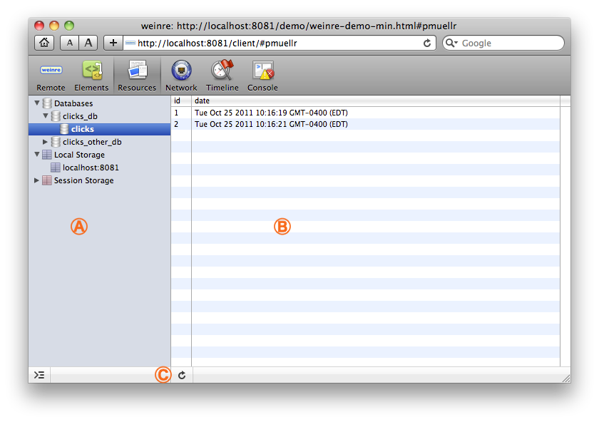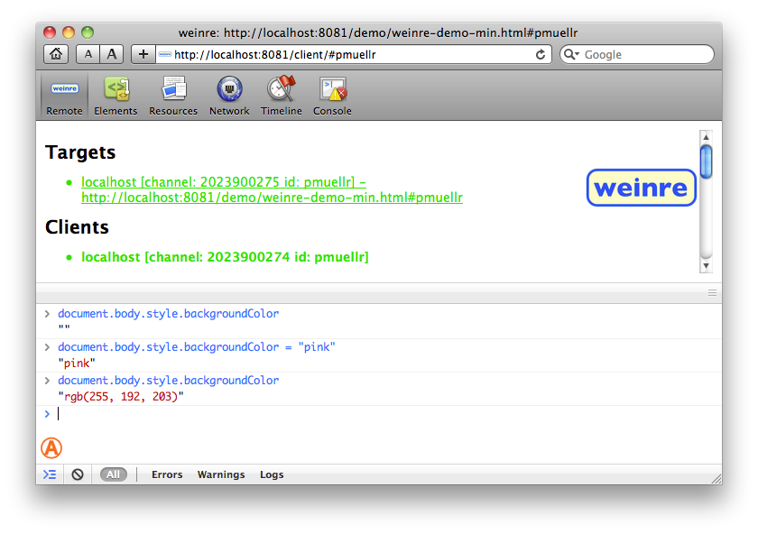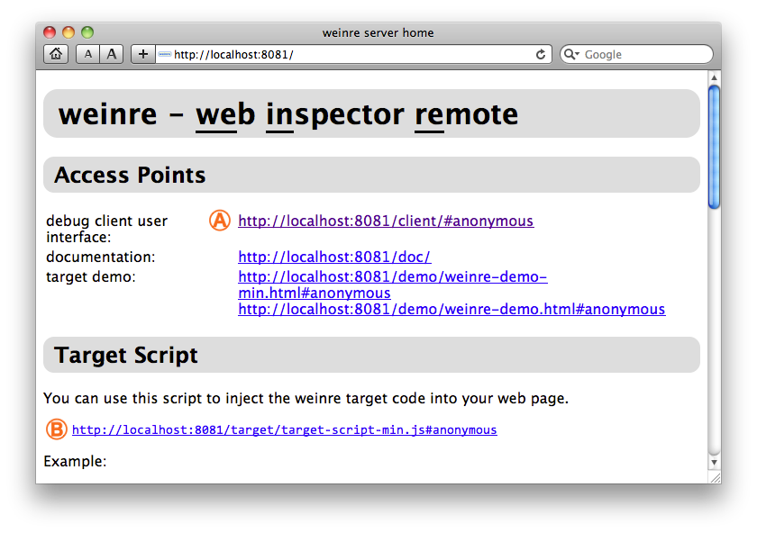 This page describes the user interface provided by weinre.